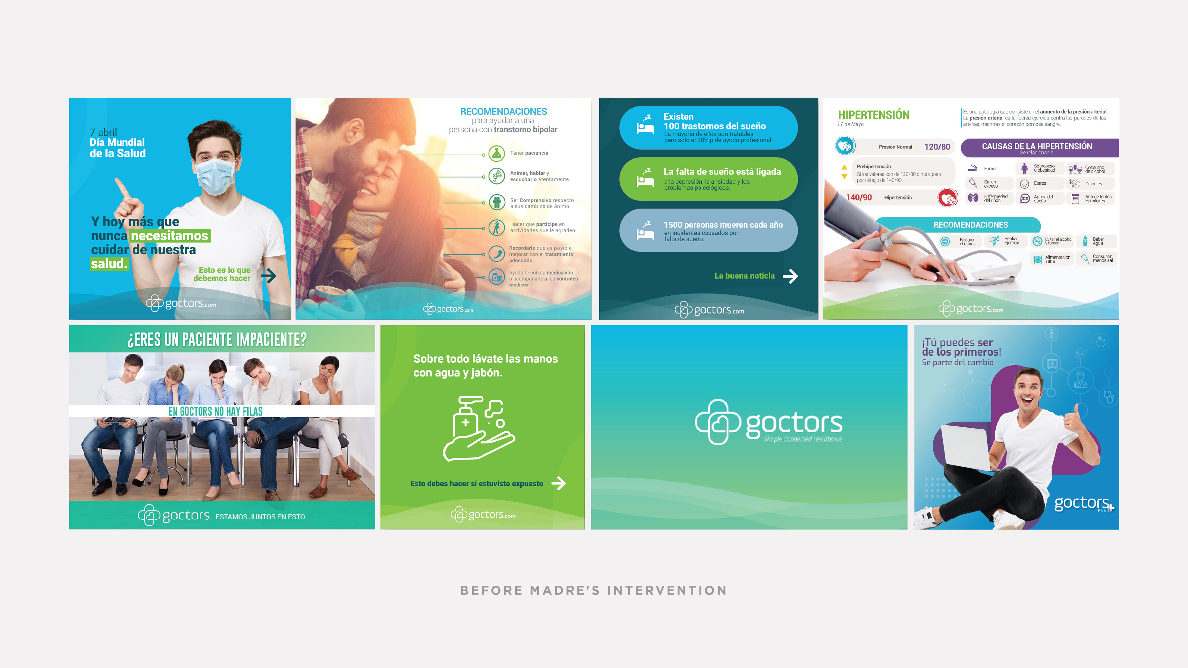 Since its foundation, Goctors had the mission of giving patients ownership of their complete health information and connecting all the actors in the health ecosystem through a united channel. Still, their message was unclear because of its complexity, and their value proposition wasn't coming across. Therefore, they invited us to help build a brand strategy that clearly communicated who they are and what they do in a relevant way for their desired audience.