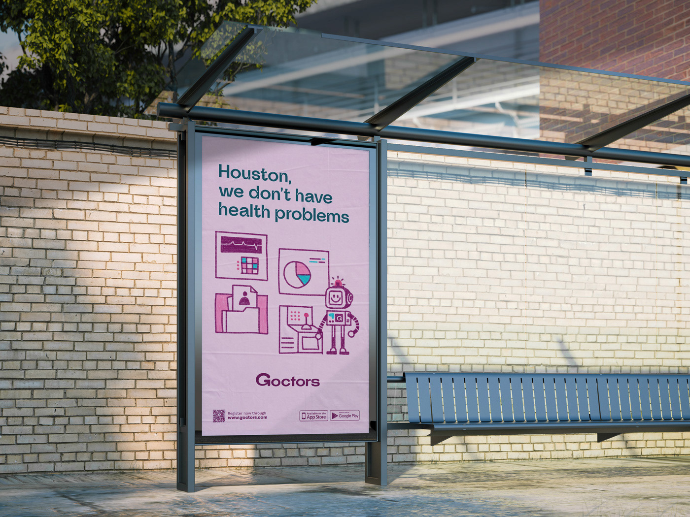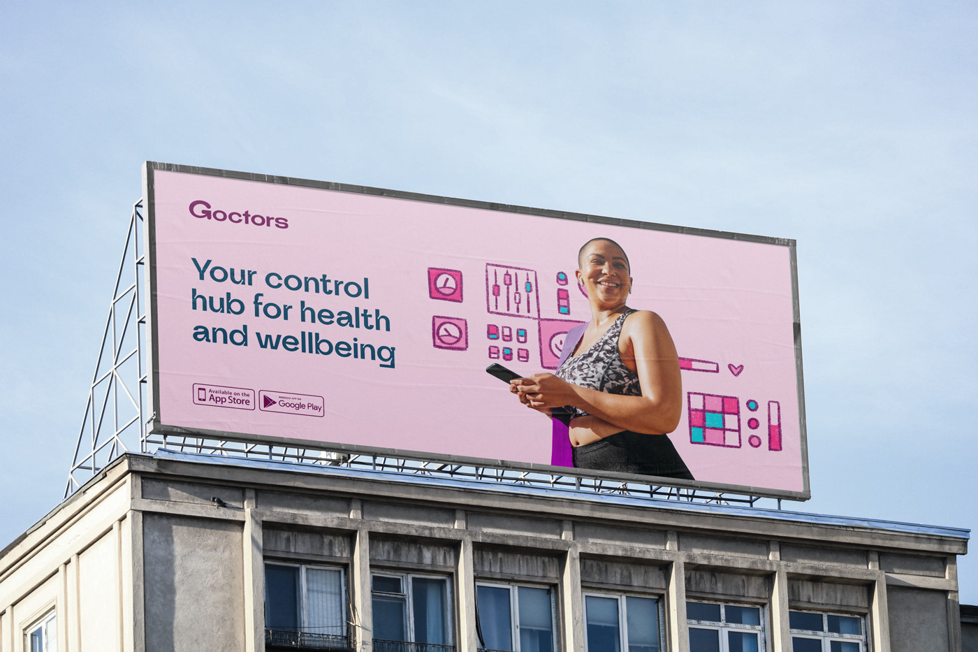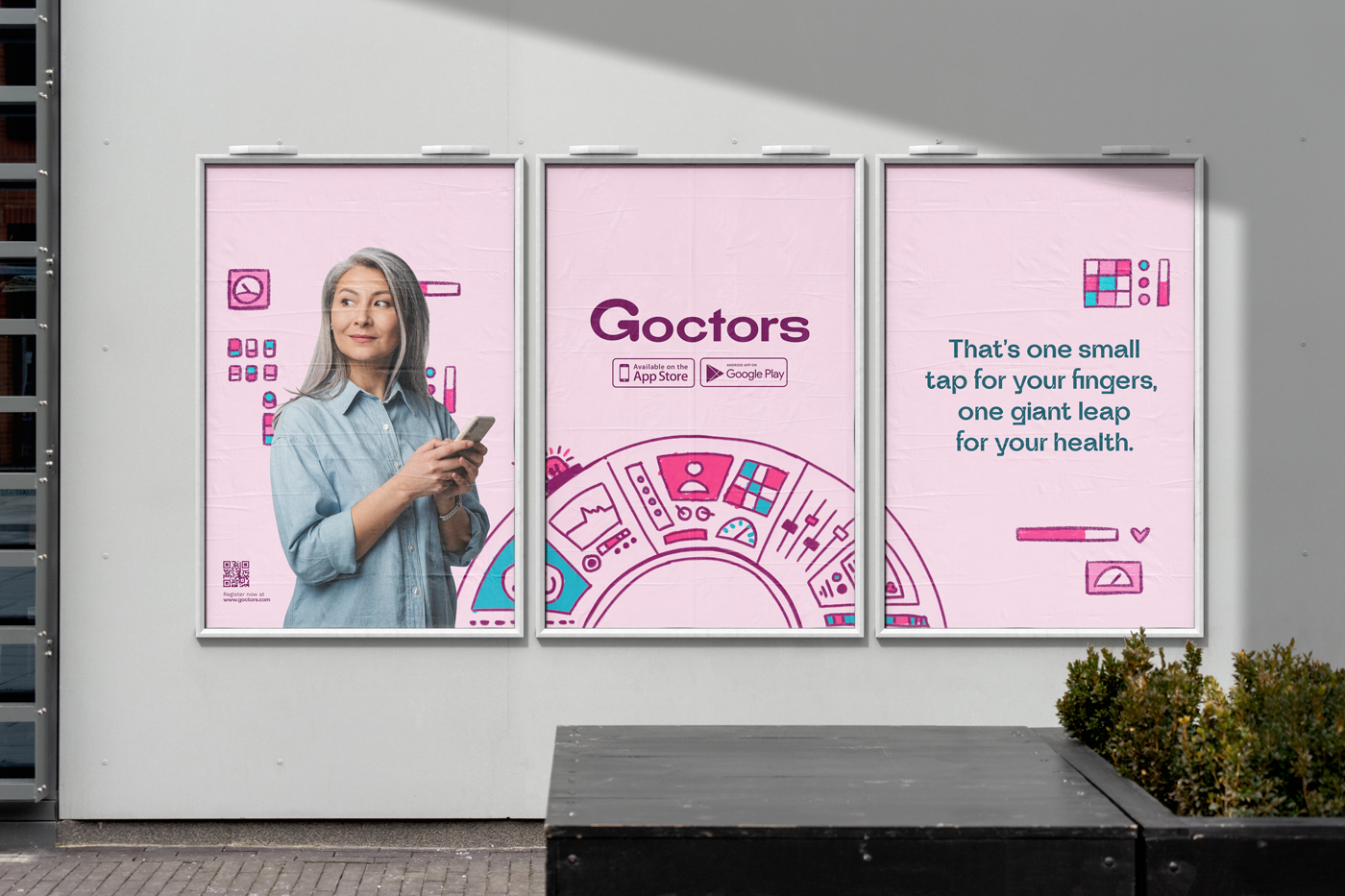 This process led us to craft the brand's leading Big Idea: "The Control Hub for Health and Wellbeing." This powerful concept clarifies the benefit that Goctors provides: having the ultimate all-in-one digital health tool at your fingertips.