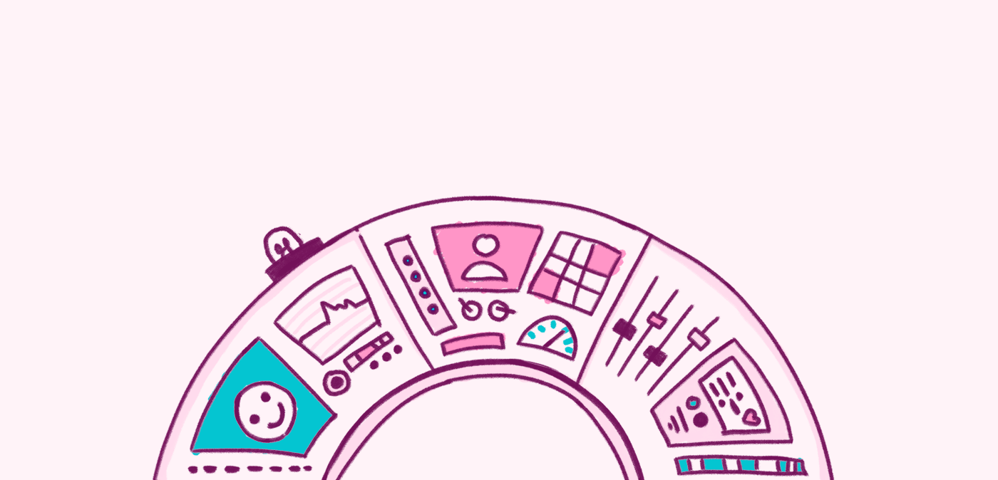 The color palette uses a light pink, differentiating from competitors by drifting away from the typical cold blues and greens and bringing kindness and a welcoming spirit to the brand. We also developed a visual system of dynamic illustrations and icons based on an aeronautics control center, embracing the analogy of the big idea.