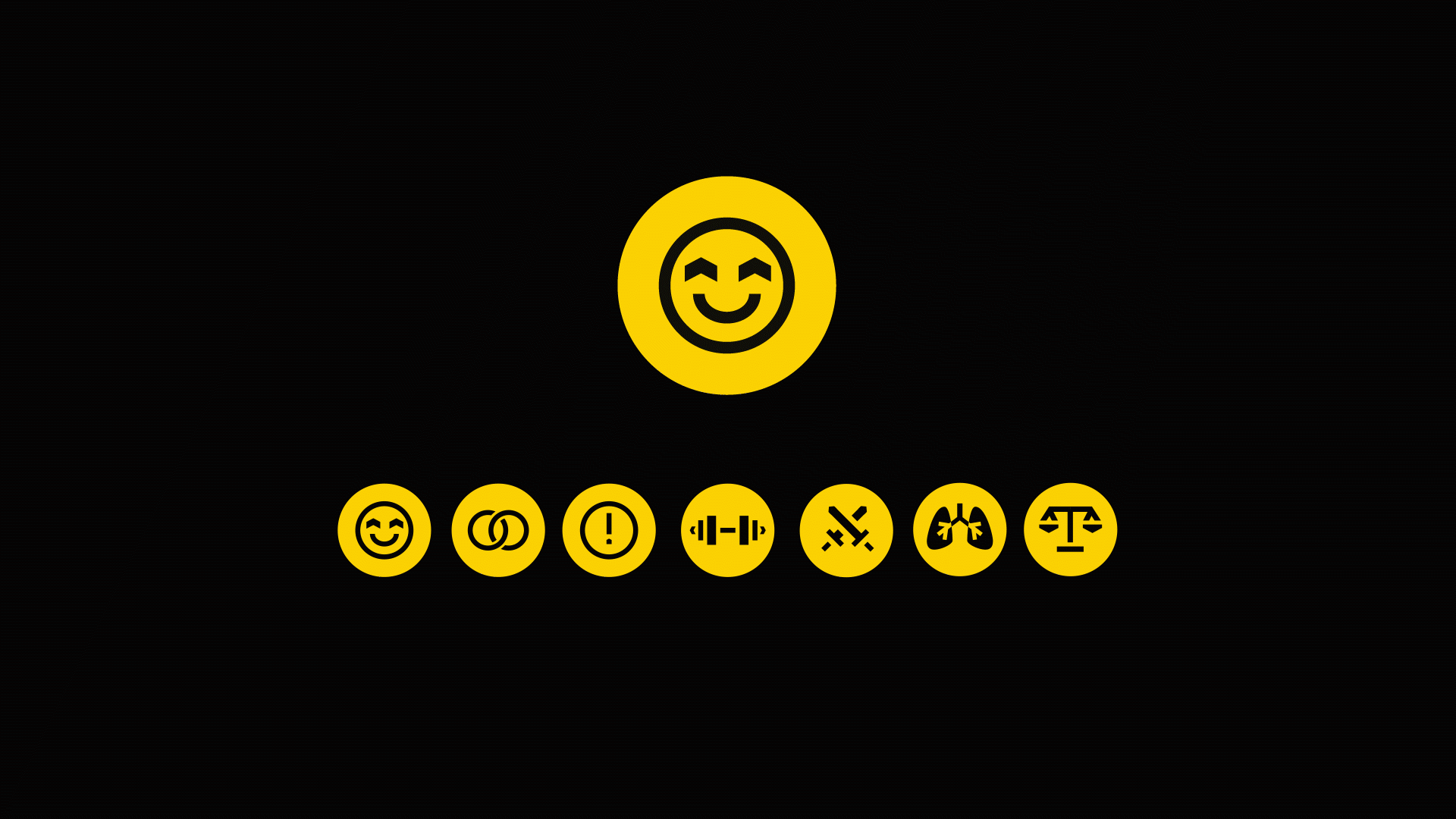 The color palette provides high impact through contrast. The black and yellow are reminiscent of sports and activewear, and combined with dramatic black and white photography, become outstanding. We wanted to transmit Jose’s edge, his attitude, taking distance from the expected calm and soothing pastel colors associated with coaching and mindfulness. The secondary typographic system, chiseled cut icons and graphics, complement and make the brand system whole, by adding more dimensions to explore and experiment with the brand, while keeping it cohesive.